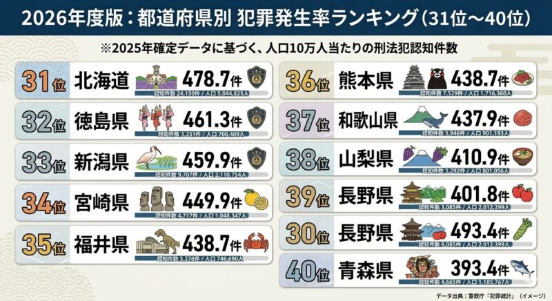 【2026年度】47都道府県「犯罪発生率」完全ランキング:治安の格差と背景を徹底分析
